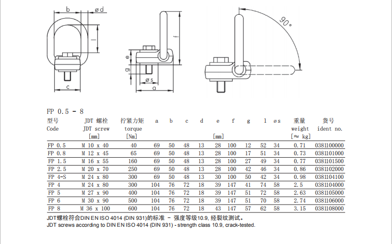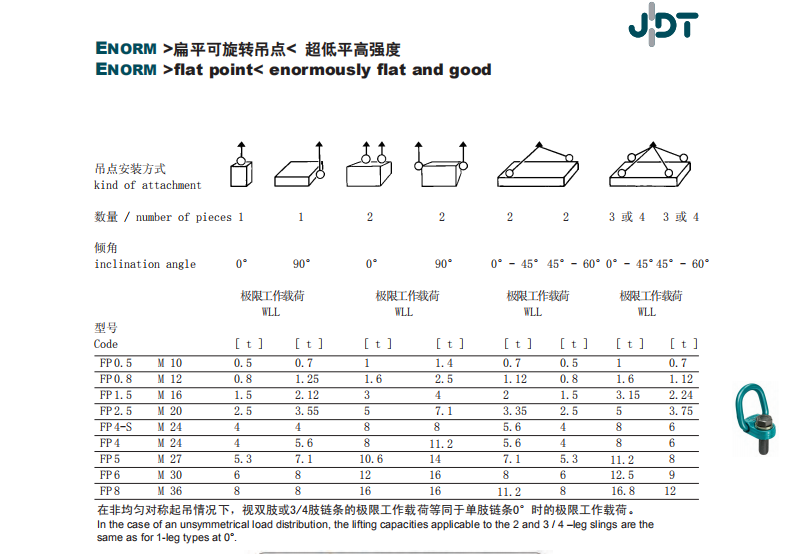 德國JDT可旋轉扁平吊點FP型 扁平側拉吊環(huán)
