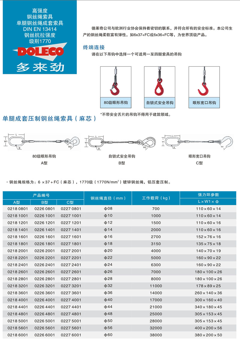 DOLECO三腿成套壓制鋼絲繩索具(麻芯)