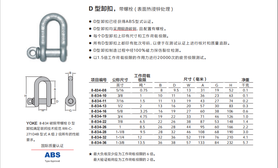 臺(tái)灣YOKE D 型卸扣( 表面熱浸鋅處理 )
