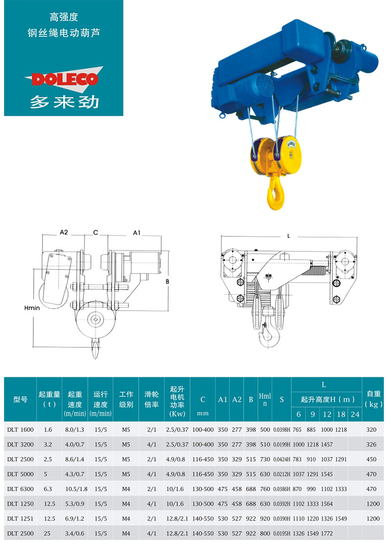 DOLECO多來(lái)勁鋼絲繩電動(dòng)葫蘆